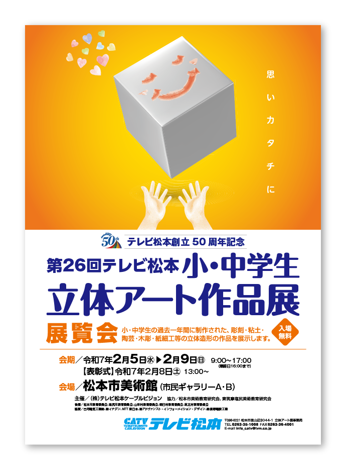 株式会社テレビ松本ケーブルビジョン様主催の『小・中学生 立体アート作品展』ポスターを、昨年に続き制作しました。